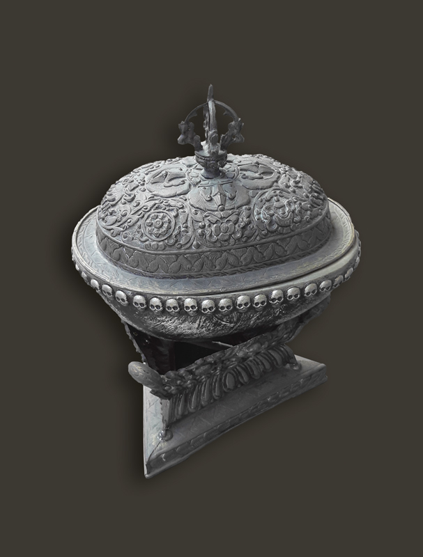 L’Oriente ha un corredo rituale e liturgico molto ricco e variegato. In questa piccola sezione abbiamo privilegiato alcuni oggetti largamente diffusi in Tibet, come le statue di bronzo che rappresentano specifici aspetti del lamaismo o del successivo pantheon buddista. Tali oggetti sono generalmente destinati alla venerazione privata e sono associati a particolari rituali, in cui si pronunciano anche specifici mantra, collegati alla manifestazione del divino. Monasteri e abitazioni sono dei veri forzieri di questi tesori.